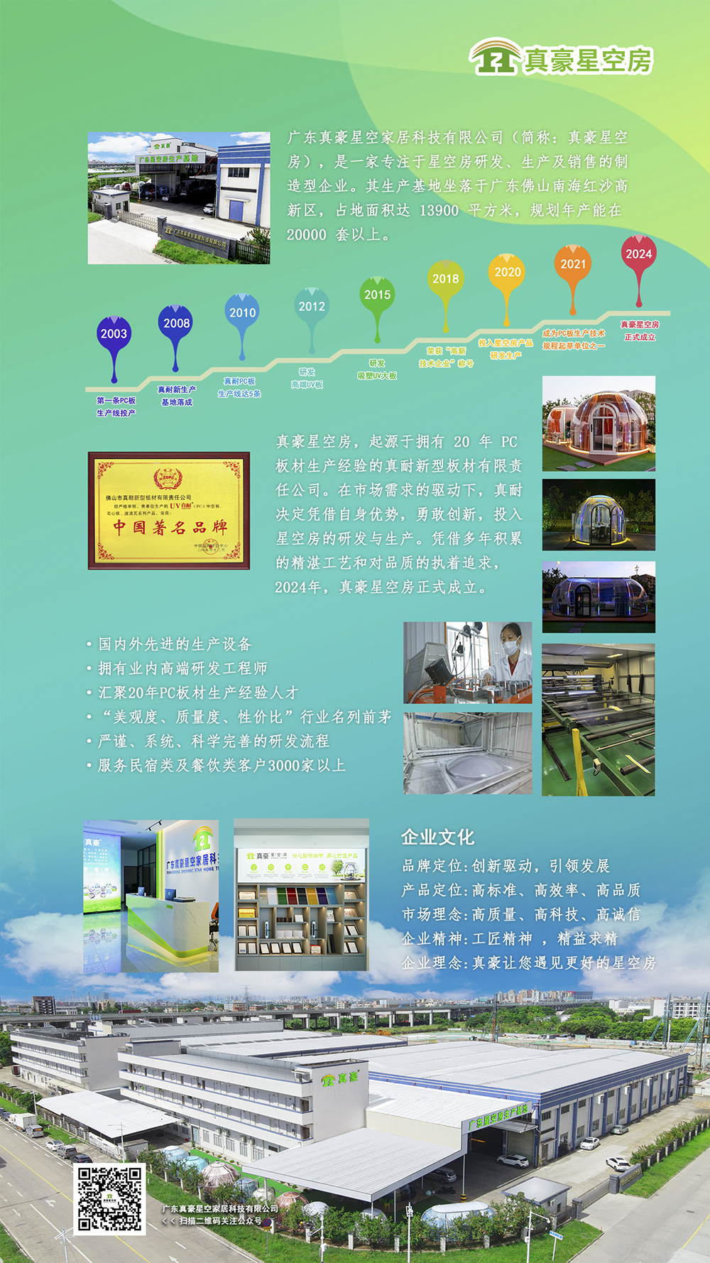 真豪作为星空房品类市场开拓者,一直执行“高质量、高科技、高诚信”的市场理念,依托多年PC板行业产品的技术研究及设计、加工优势,整合先进理念,创出一套严谨、系统、科学完善的研发流程,不断推出升级优化居住体验感的新型产品。未来,我们将一如既往地为广大用户提供质优而有竞争力的产品和服务,共同携手辉煌前行!